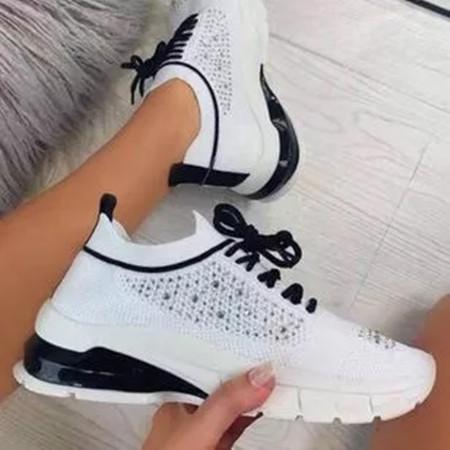 Women's Lace-up Closed Toe Fabric Wedge Heel Sneakers