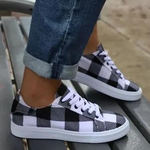 Women's Lace-up Closed Toe Flat Heel Sneakers