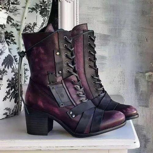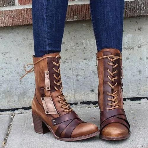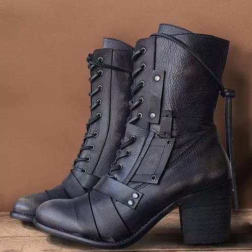 Women's Lace-up Mid-Calf Boots Chunky Heel Boots