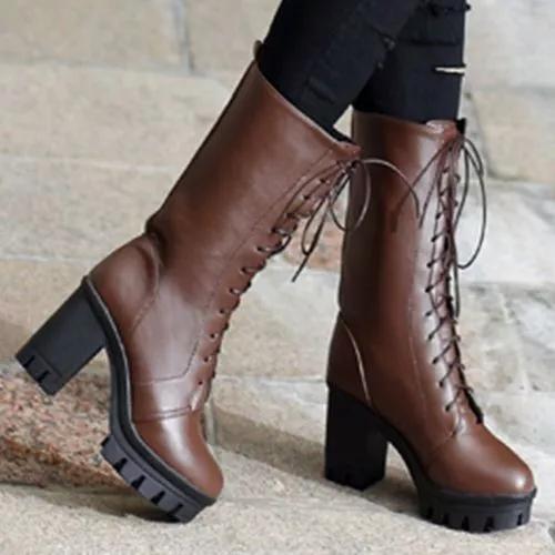 Women's Lace-up Mid-Calf Boots Low Heel Boots