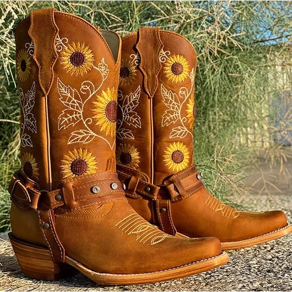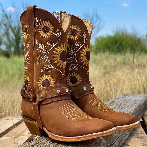Women's Natural Cowhide Leather Sunflower Boots