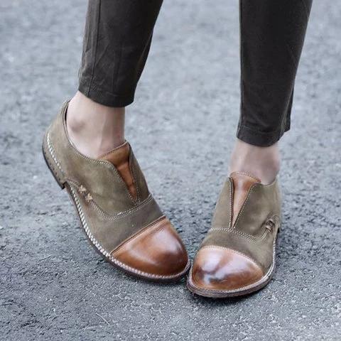 Women's Oxford Shoes Cap Toe X Stitching Vintage Loafers