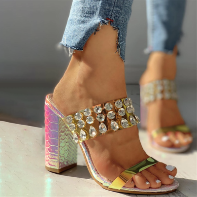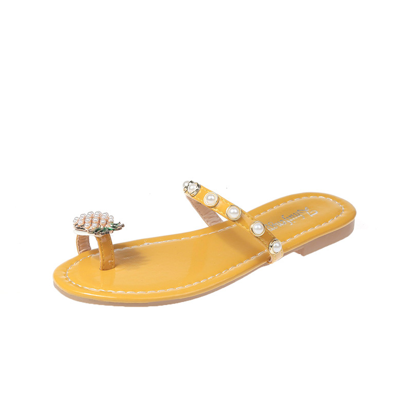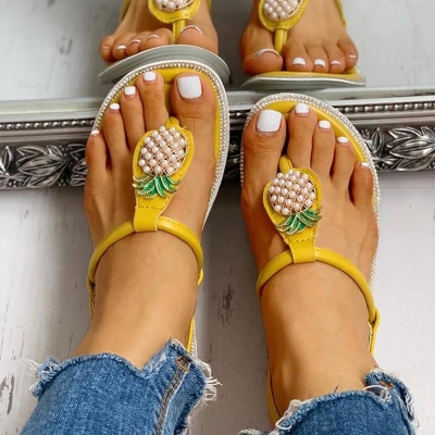Womens Pineapple Rhinestone Slip-on Slide Sandals