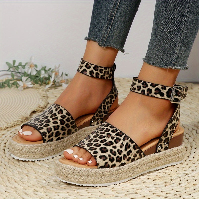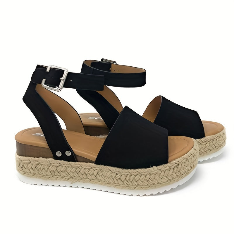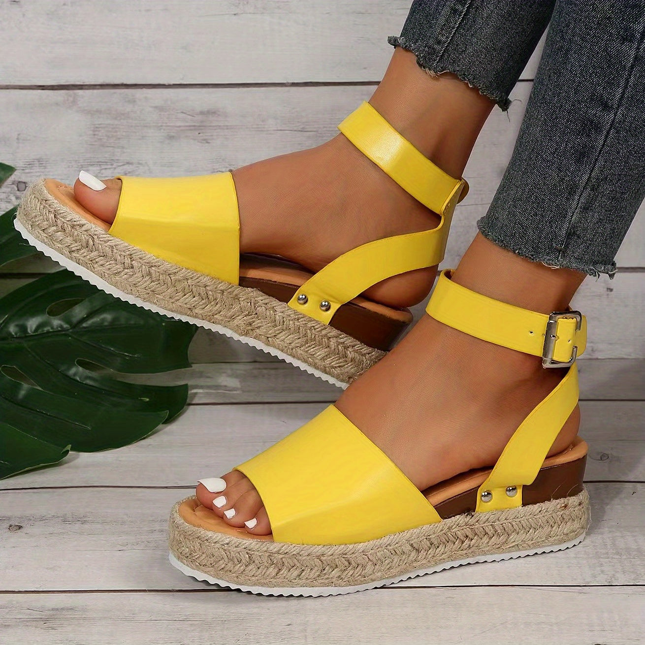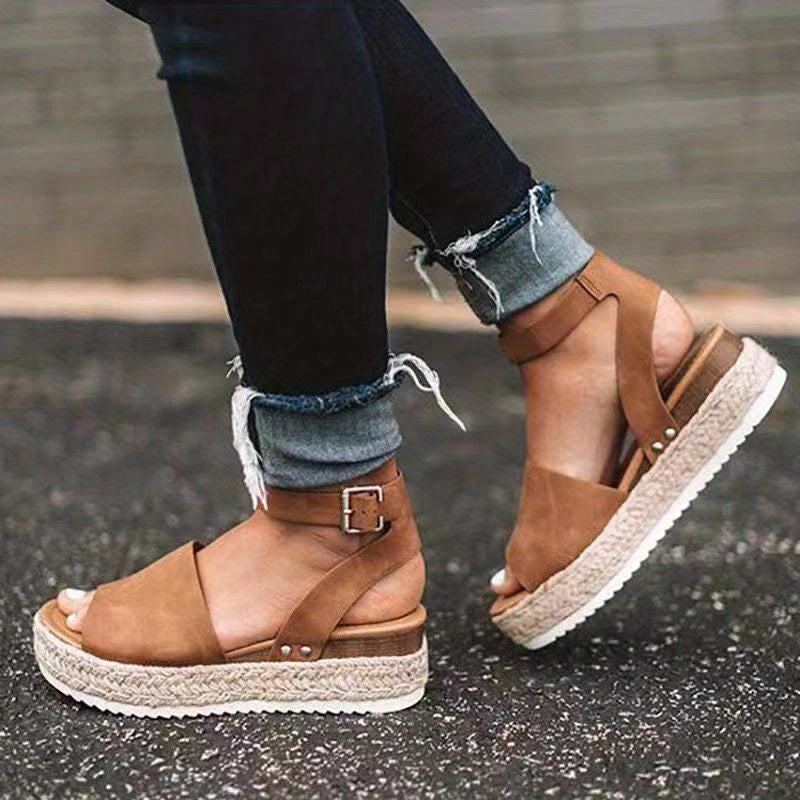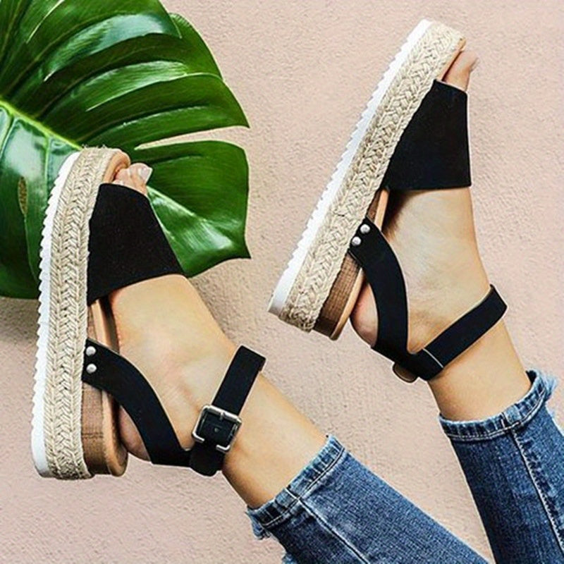 Women's Platform Espadrilles Sandals, Open Toe Ankle Buckle Strap Anti-skid Slingback Shoes, Casual Outdoor Beach Sandals