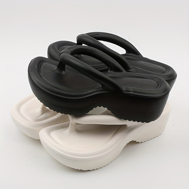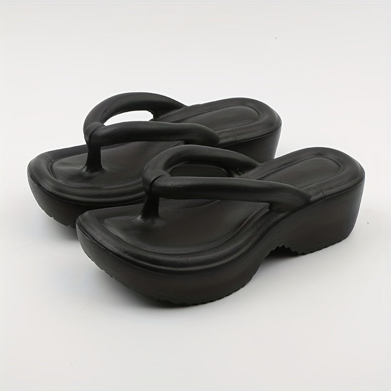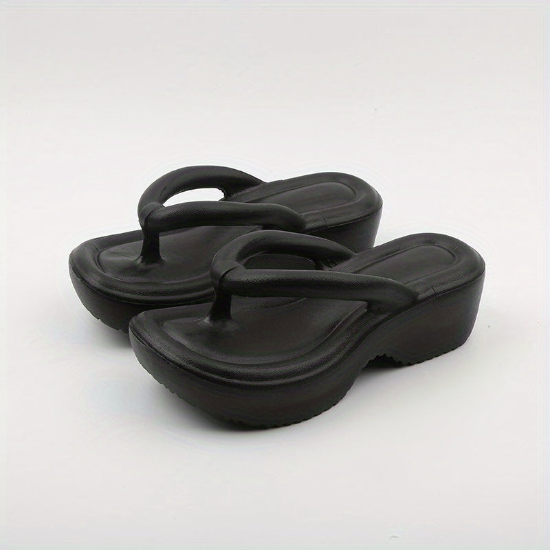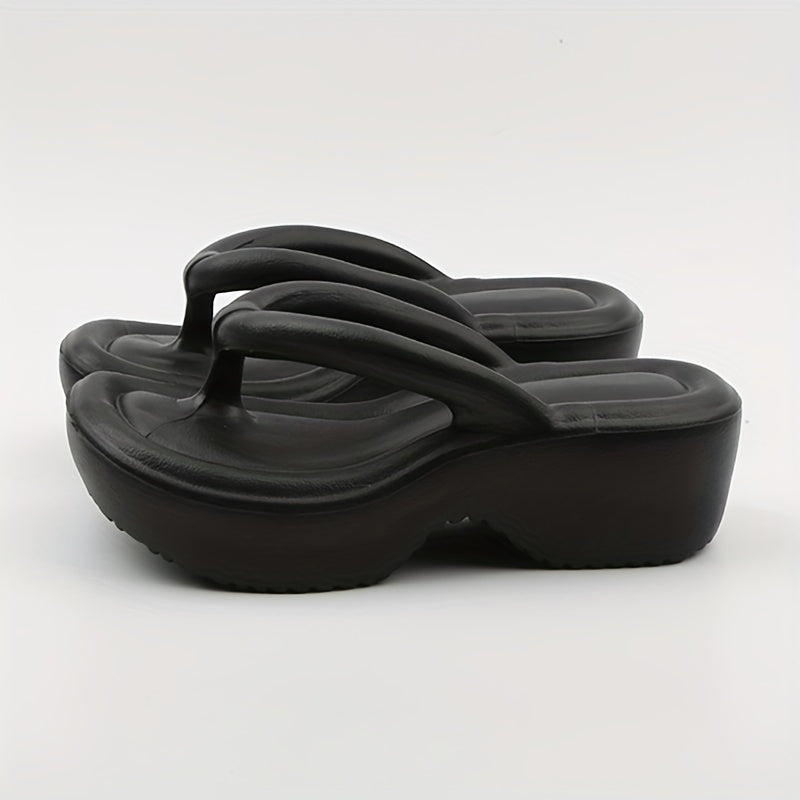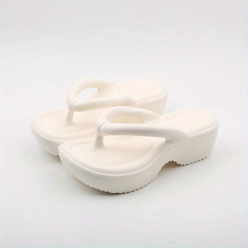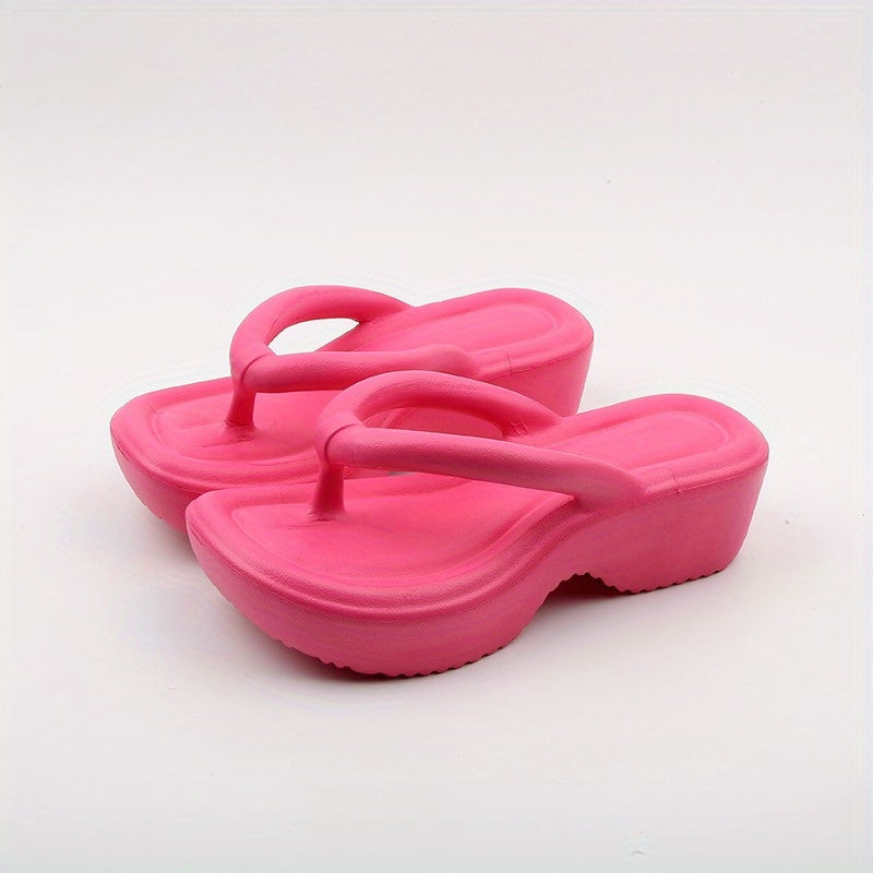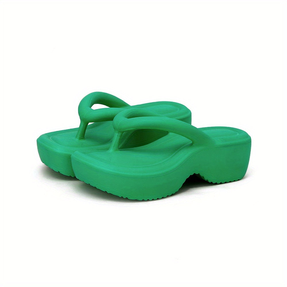 Women's Platform Flip Flops, Chunky Heeled Solid Color Non Slip EVA Slides, Outdoor Beach Thong Sandals