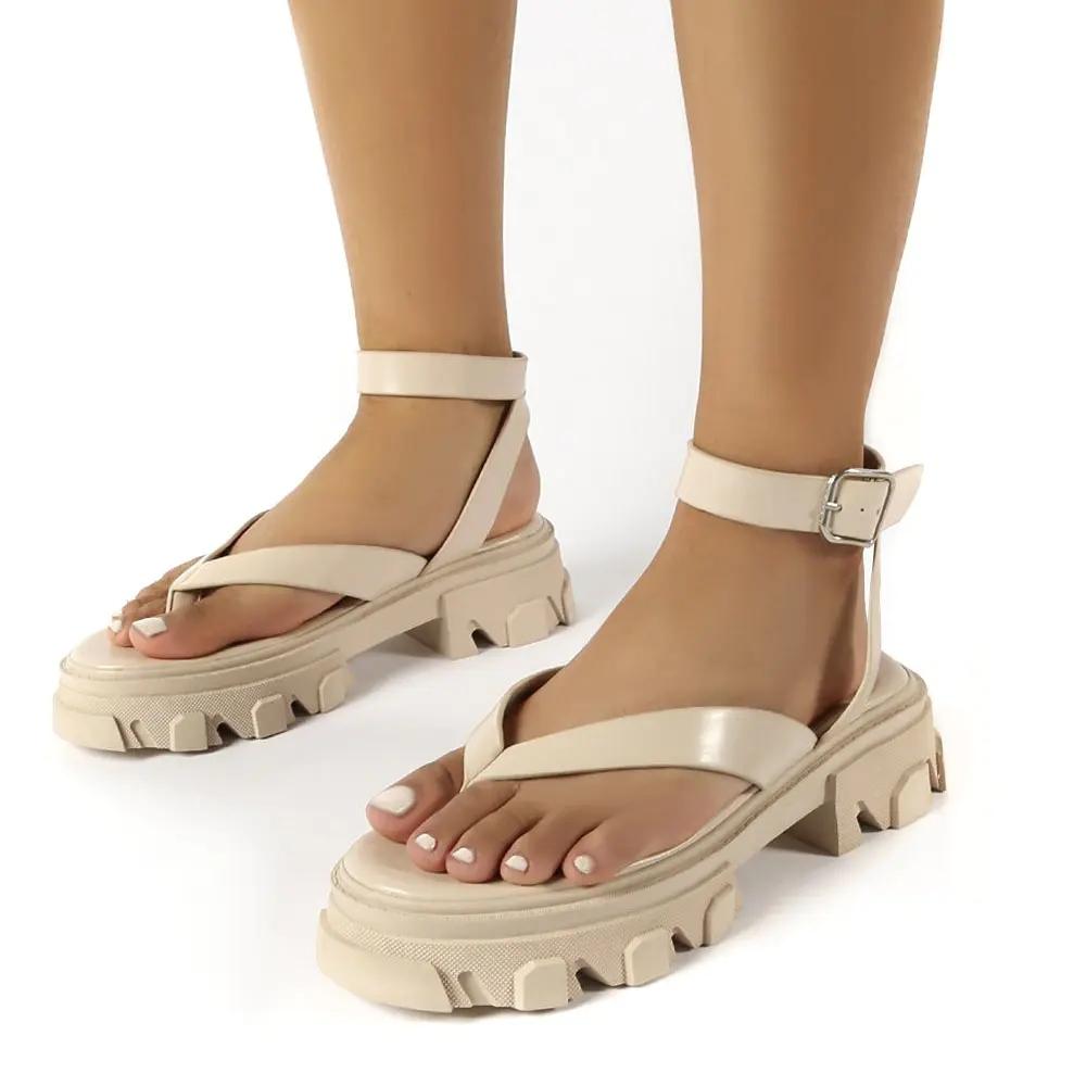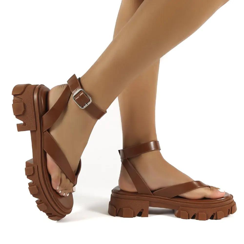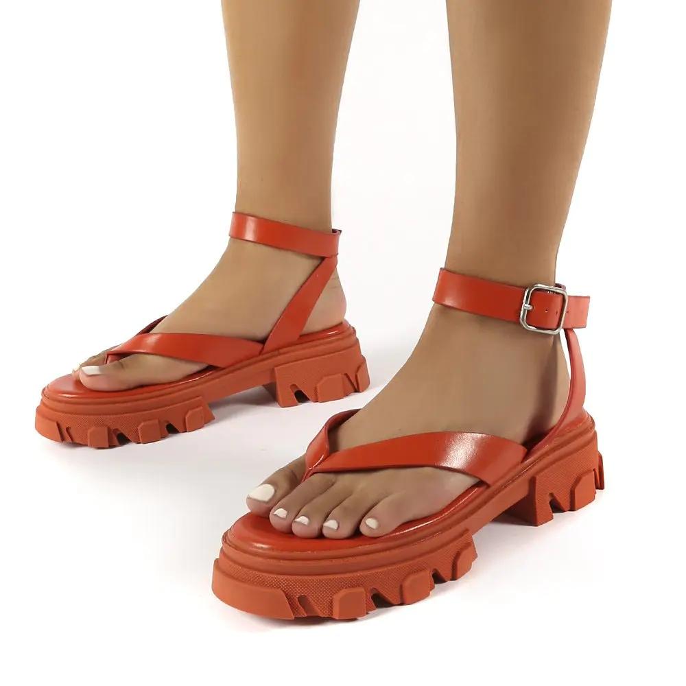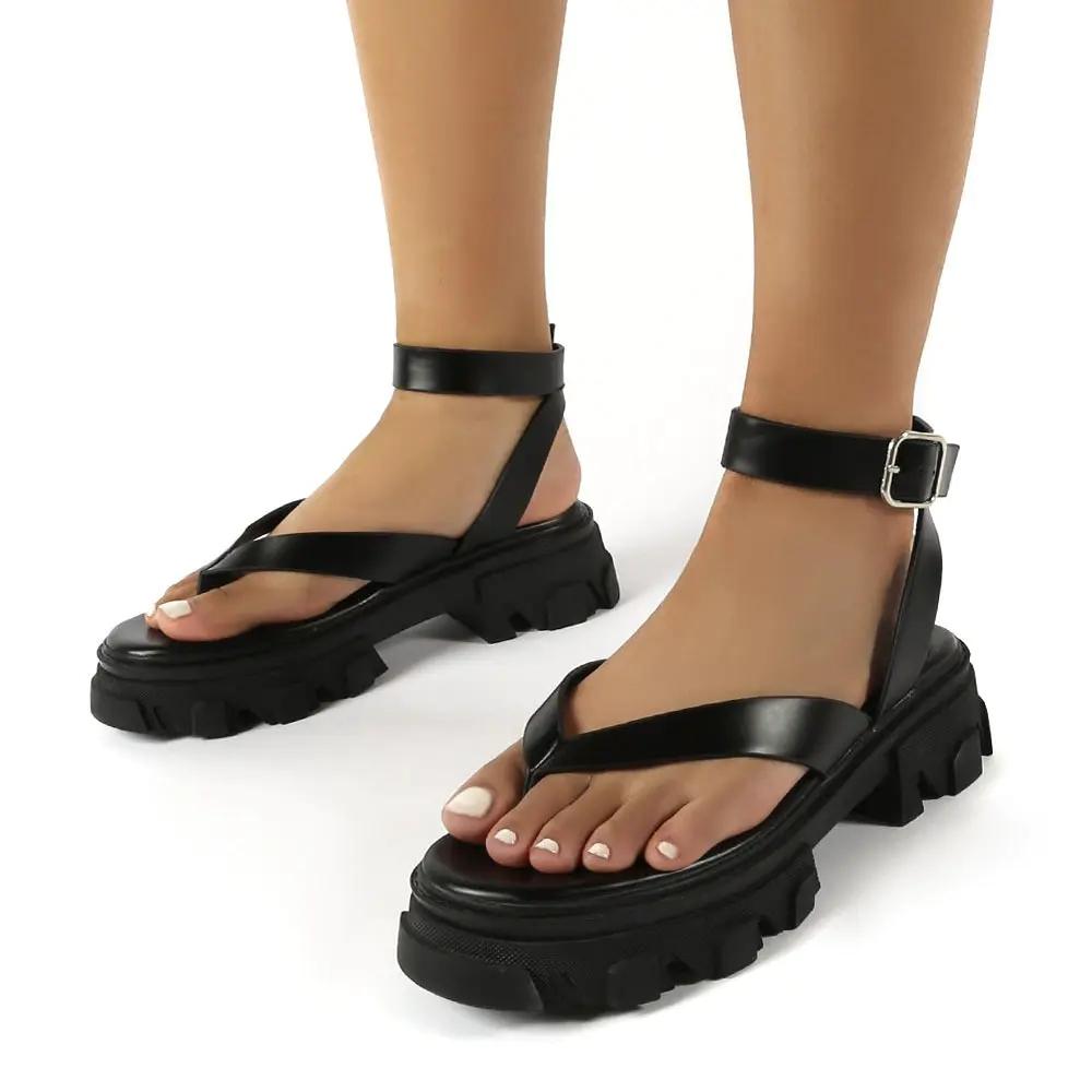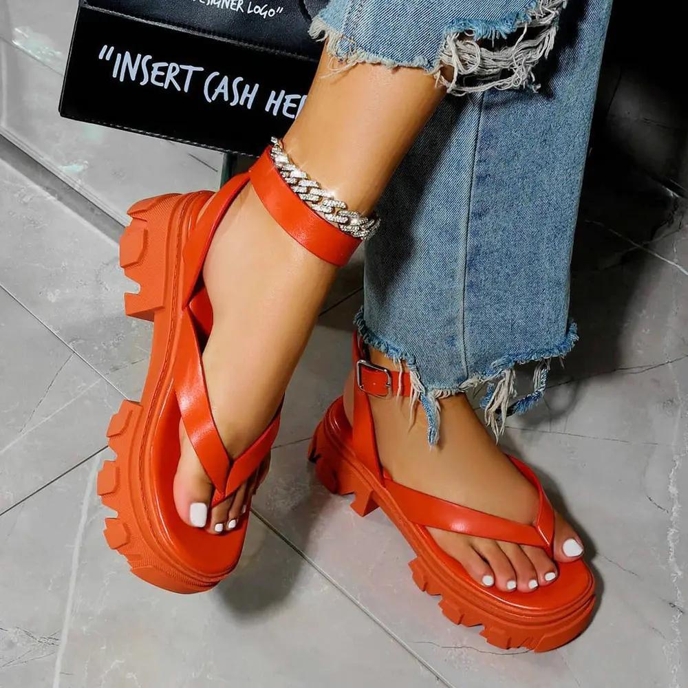 Women's Pu Chunky Sole Ankle Wrap Thong Strap Sandals