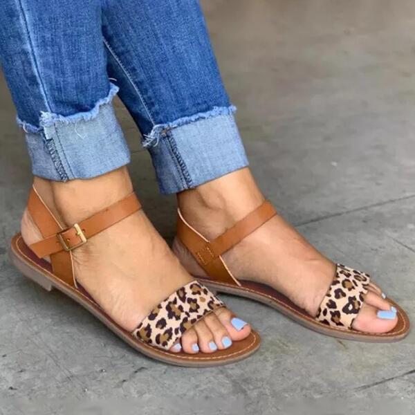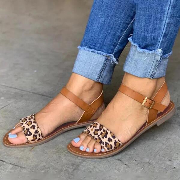 Women's PU Flat Heel Sandals Flats Peep Toe With Hollow-out shoes