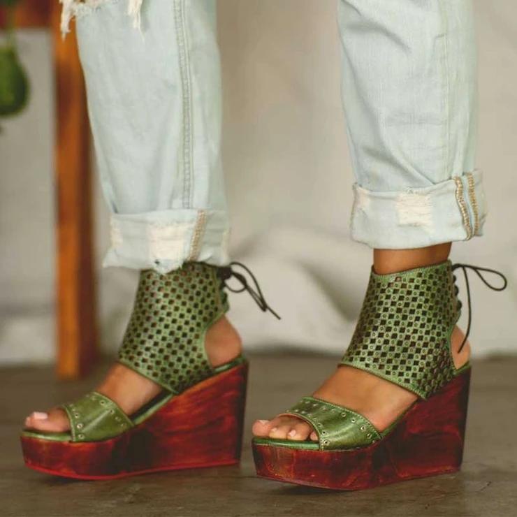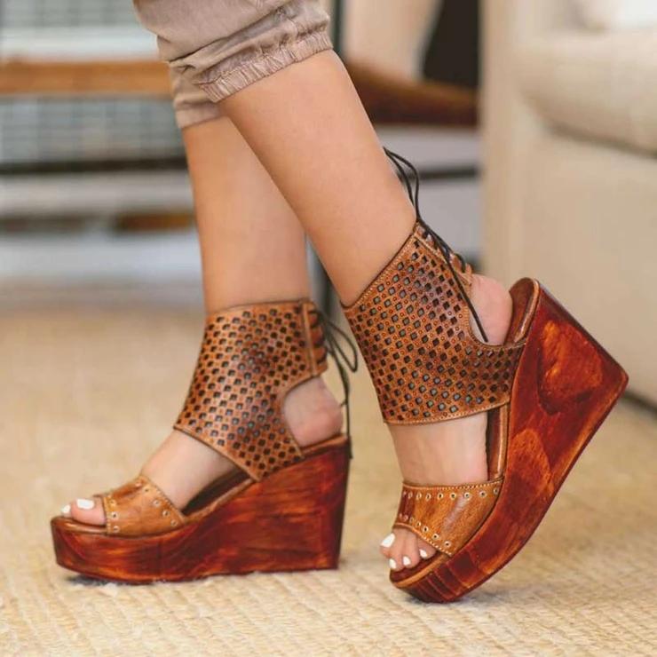 Women's Retro Wedge Lace-Up Clogs Sandals