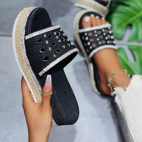 Women's Rhinestone Denim Platform Sandals