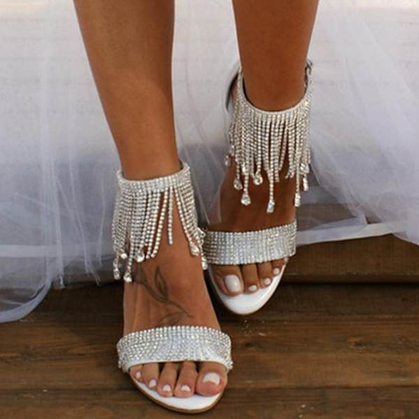 Womens Rhinestone Tassel Chain Sandals