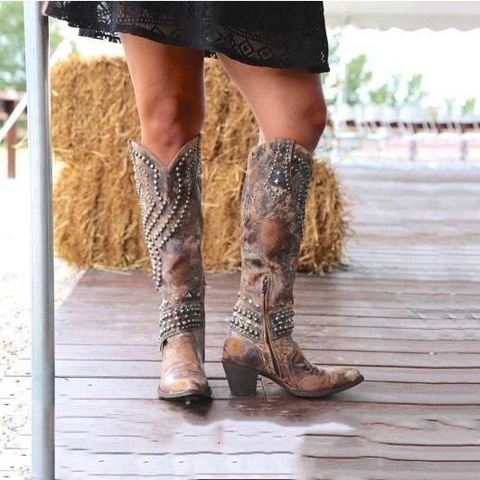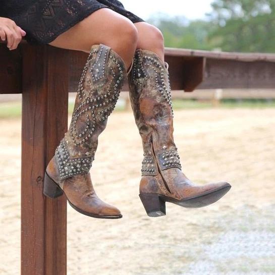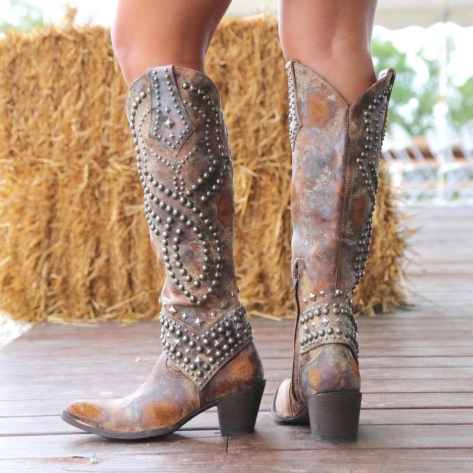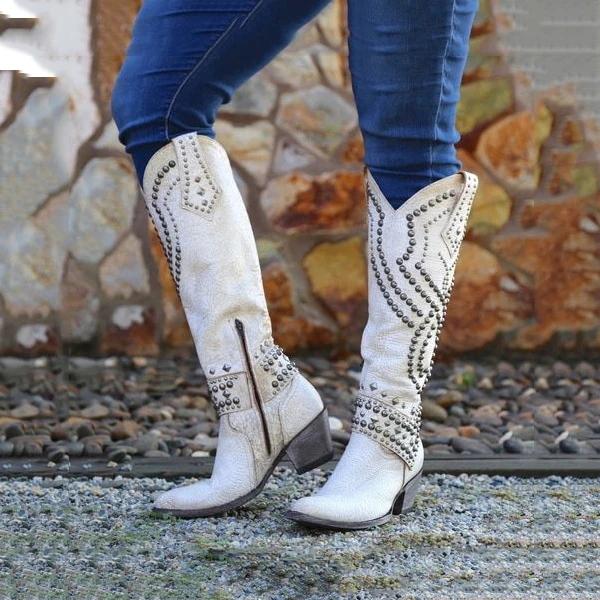 Women's Rivets Pointed Toe Western Cowboy High Boots