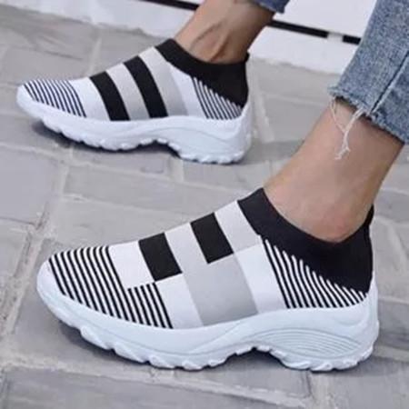 Women's Round Toe Fabric Flat Heel Sneakers