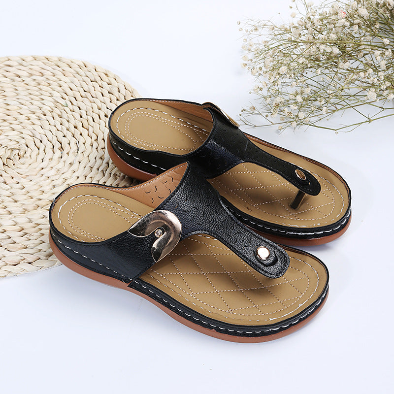 Women's Round Toe Hollow Wedge Flip-flops