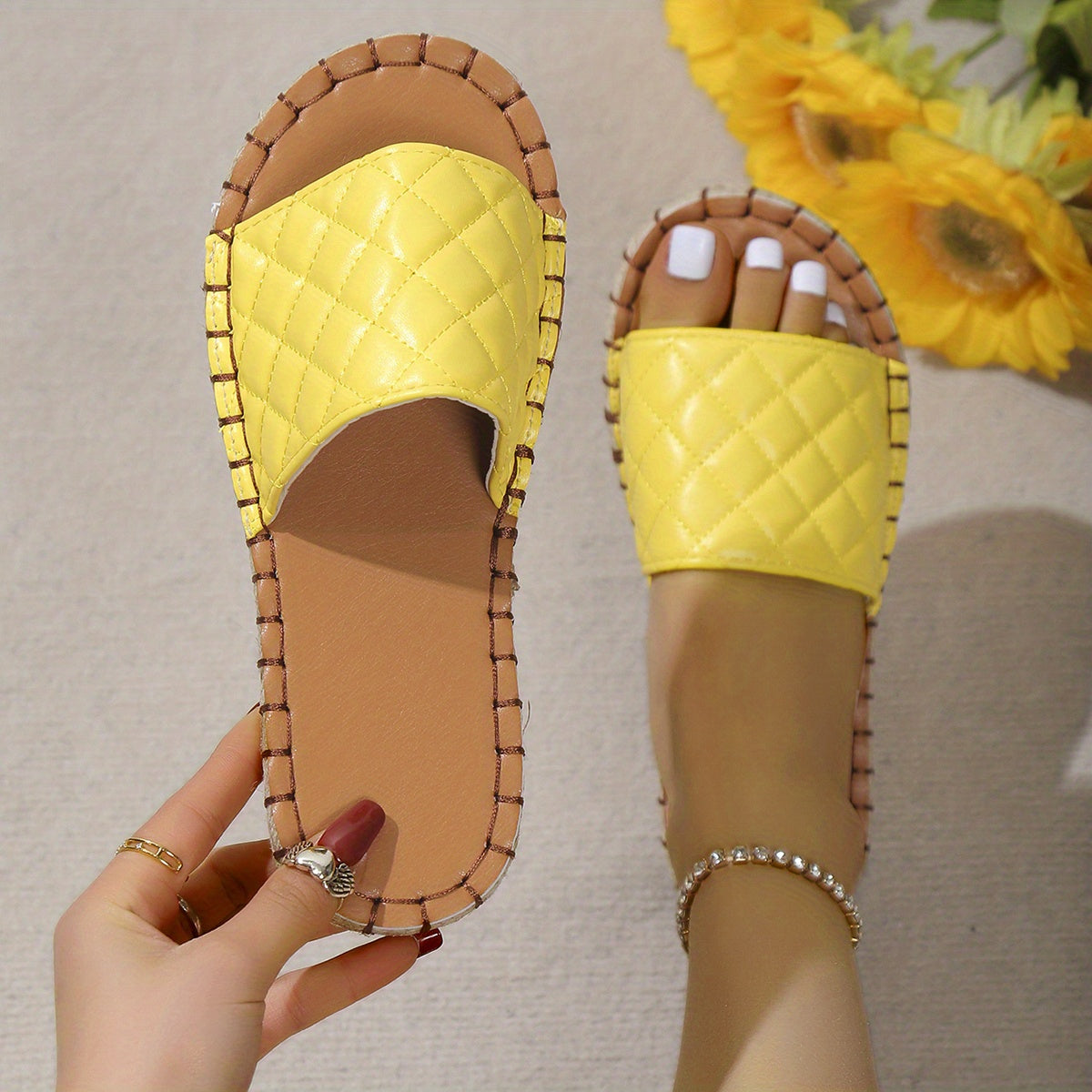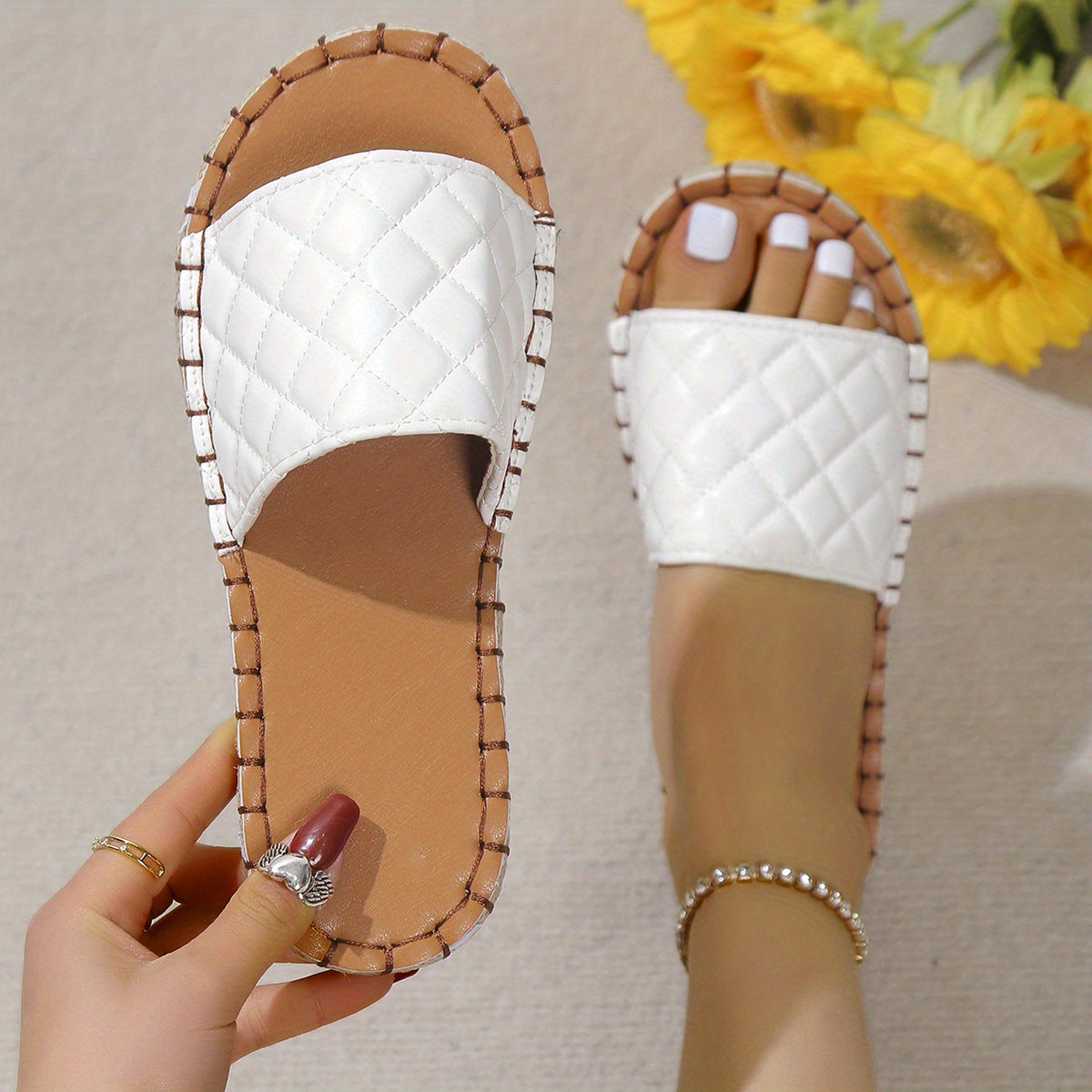 Women's Slide Sandals, Anti-slip Quilted Flat Slippers, Indoor And Outdoor Slides