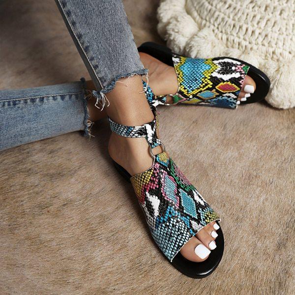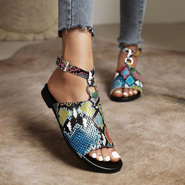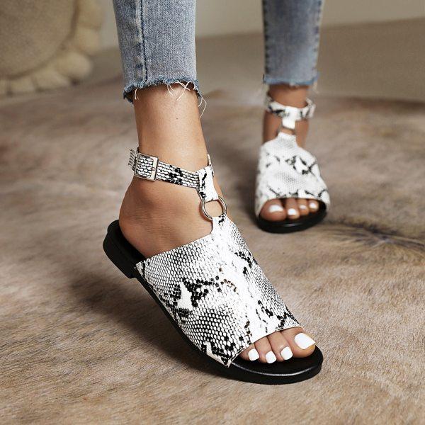Women's Snake Print Buckle Casual Sandals