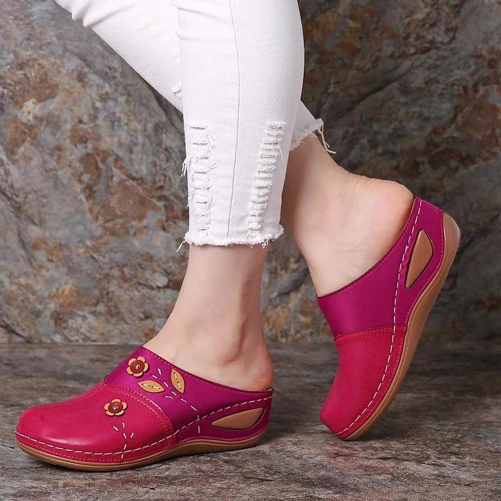 Women's Splicing Flower Stitching Comfortable Clogs Backless Wedges Sandals