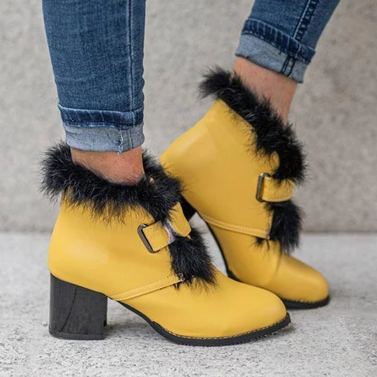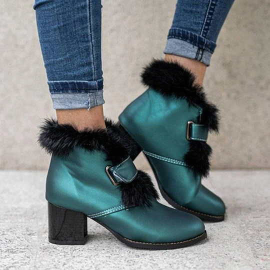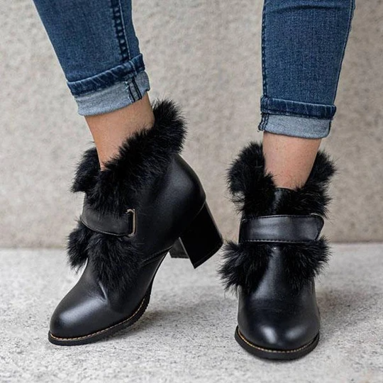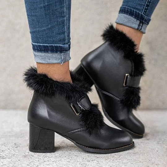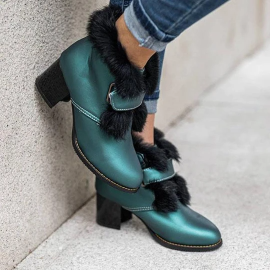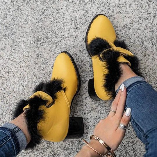 Women's Stylish Furry Chunky Heel Ankle Boots