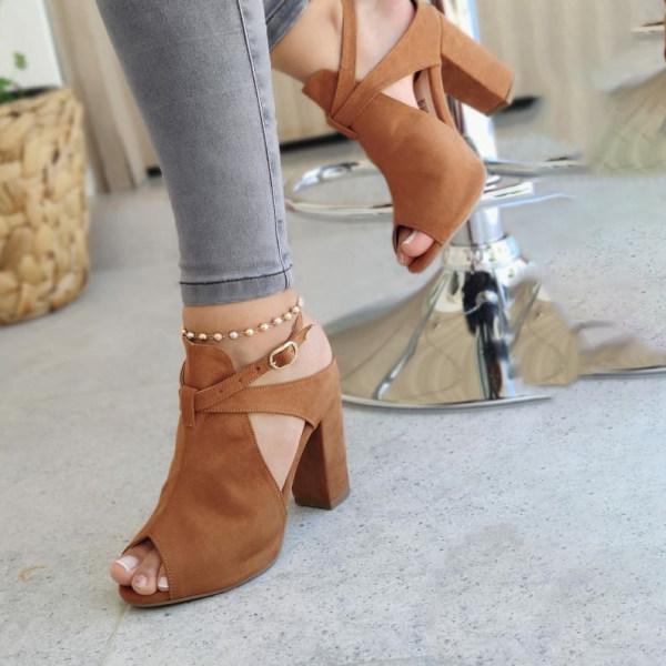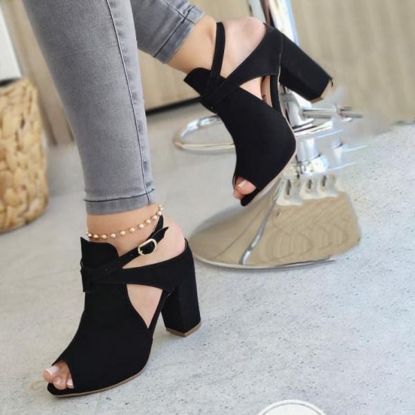 Womens Suede High-heel Buckle Sandals