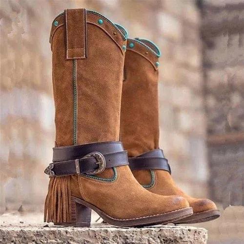 Women's Tassel Mid-Calf Boots Chunky Heel Boots