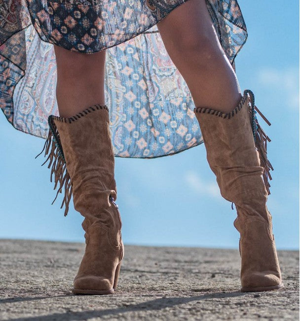 Women's Tassel Mid-Calf Boots Chunky Heel Boots