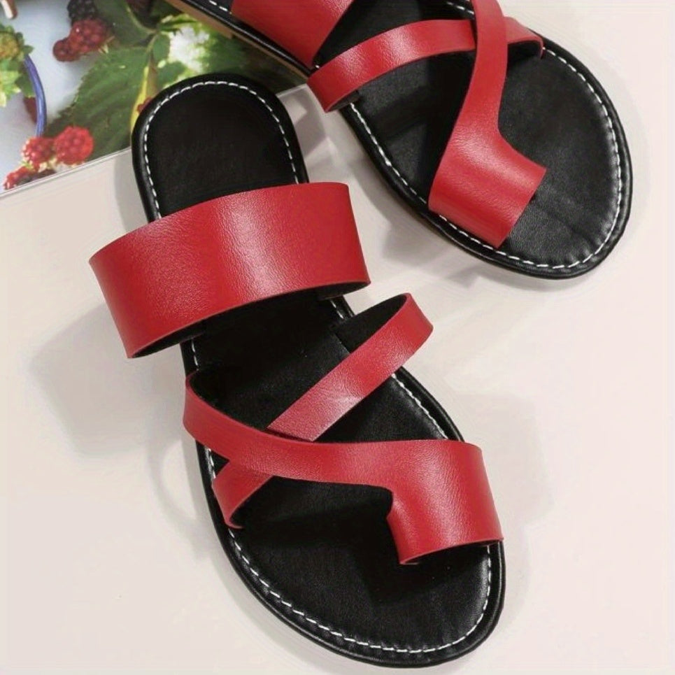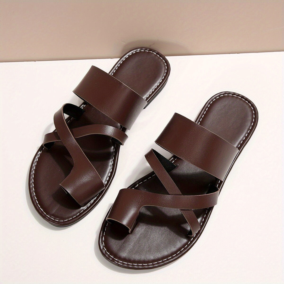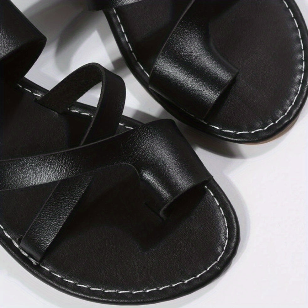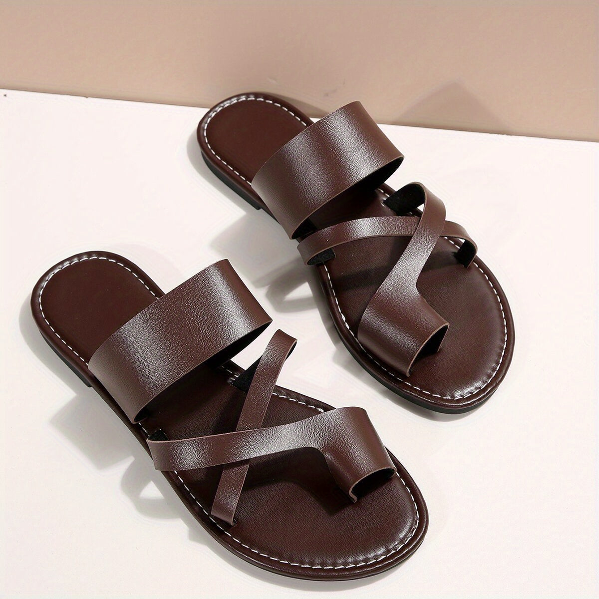 Women's Toe Loop Cross Strap Flat Slippers, Open Toe Non Slip Solid Slides Shoes, Casual Outdoor Slippers