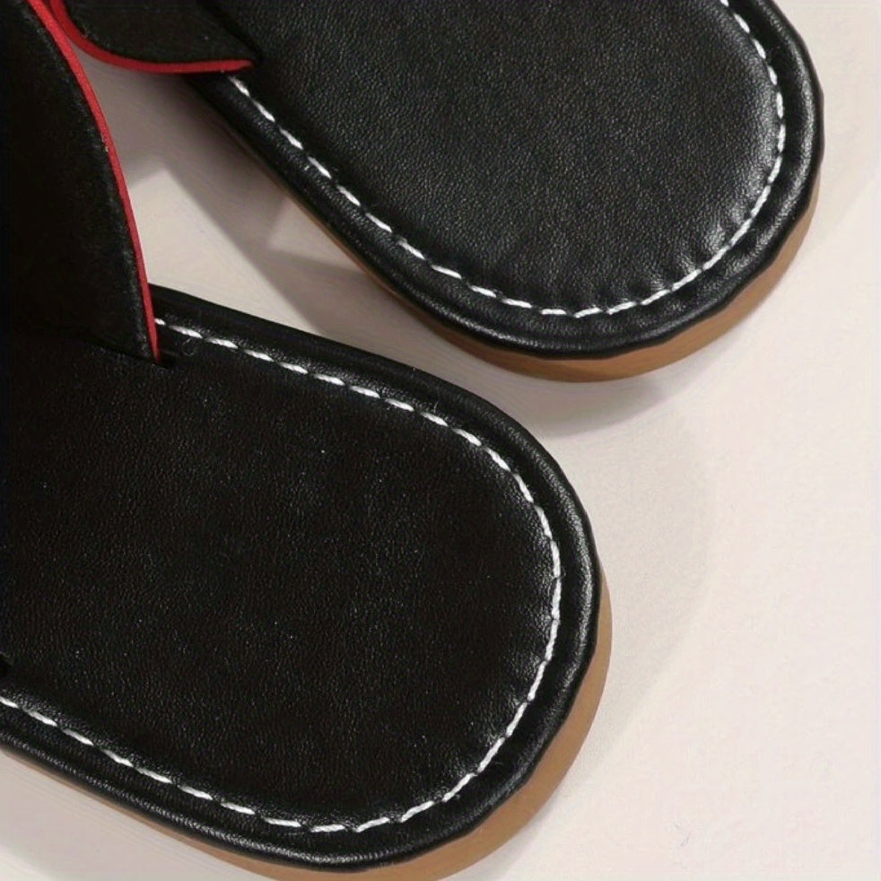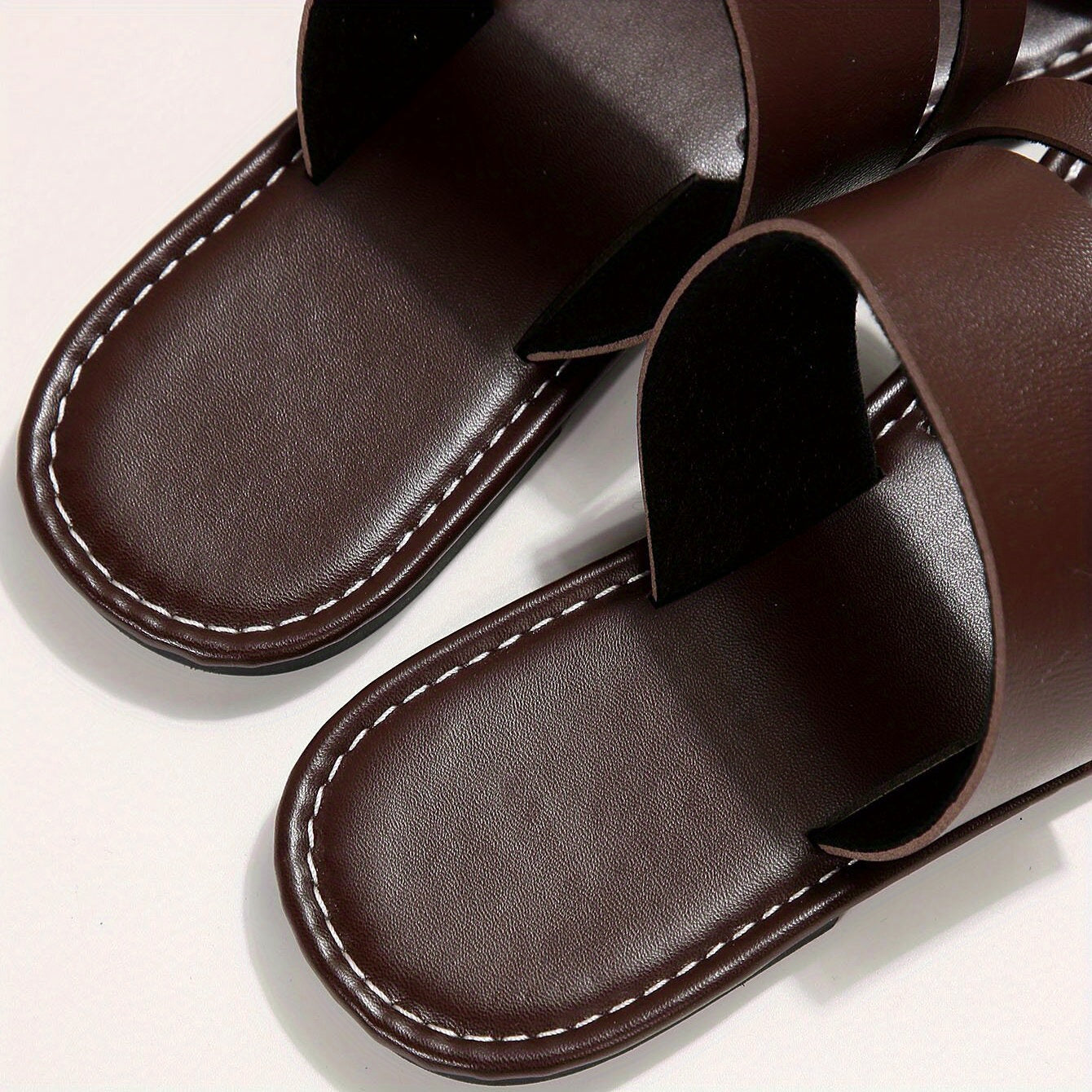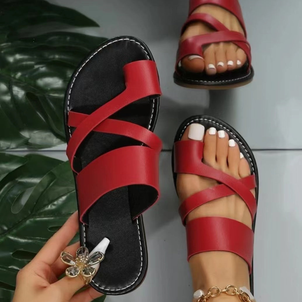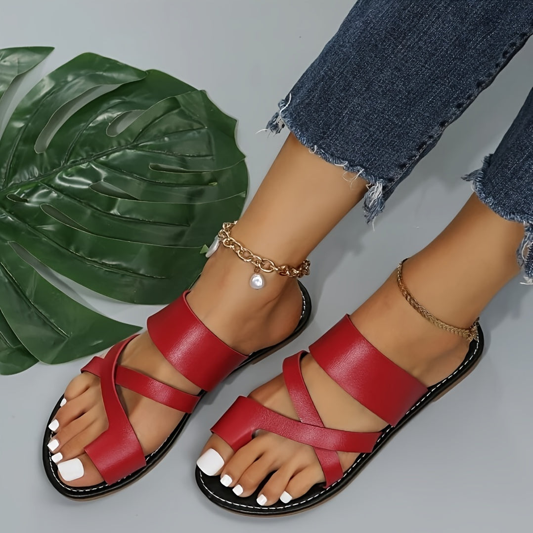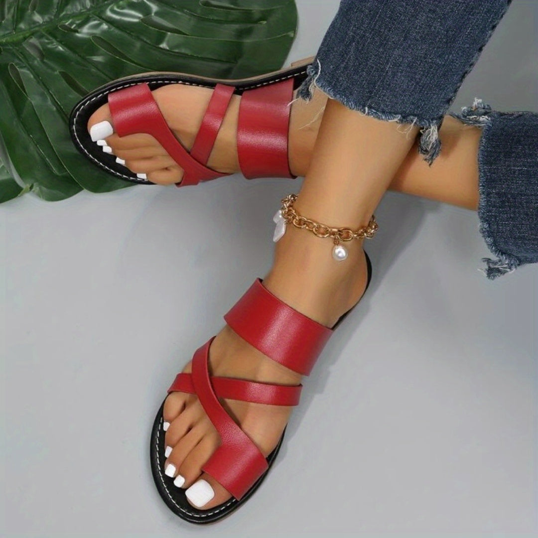 Women's Toe Loop Cross Strap Flat Slippers, Open Toe Non Slip Solid Slides Shoes, Casual Outdoor Slippers
