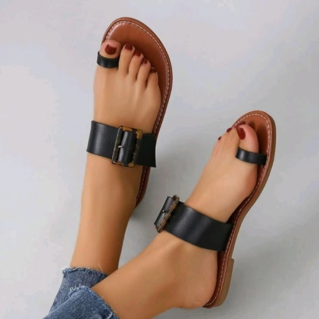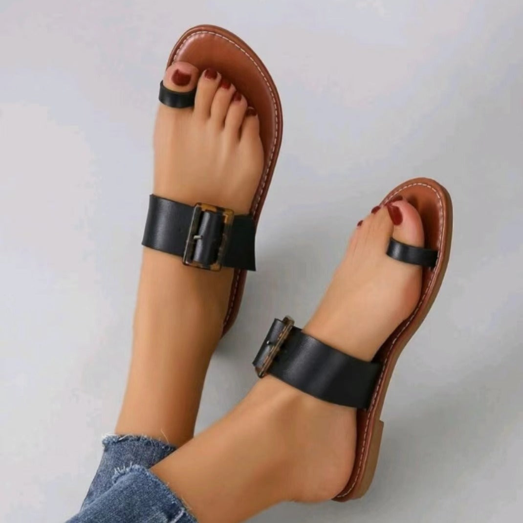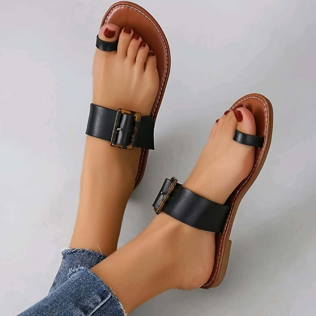 Women's Toe-Loop Flat Sandals, Retro Style Buckle Flat Shoes, Women's Footwear