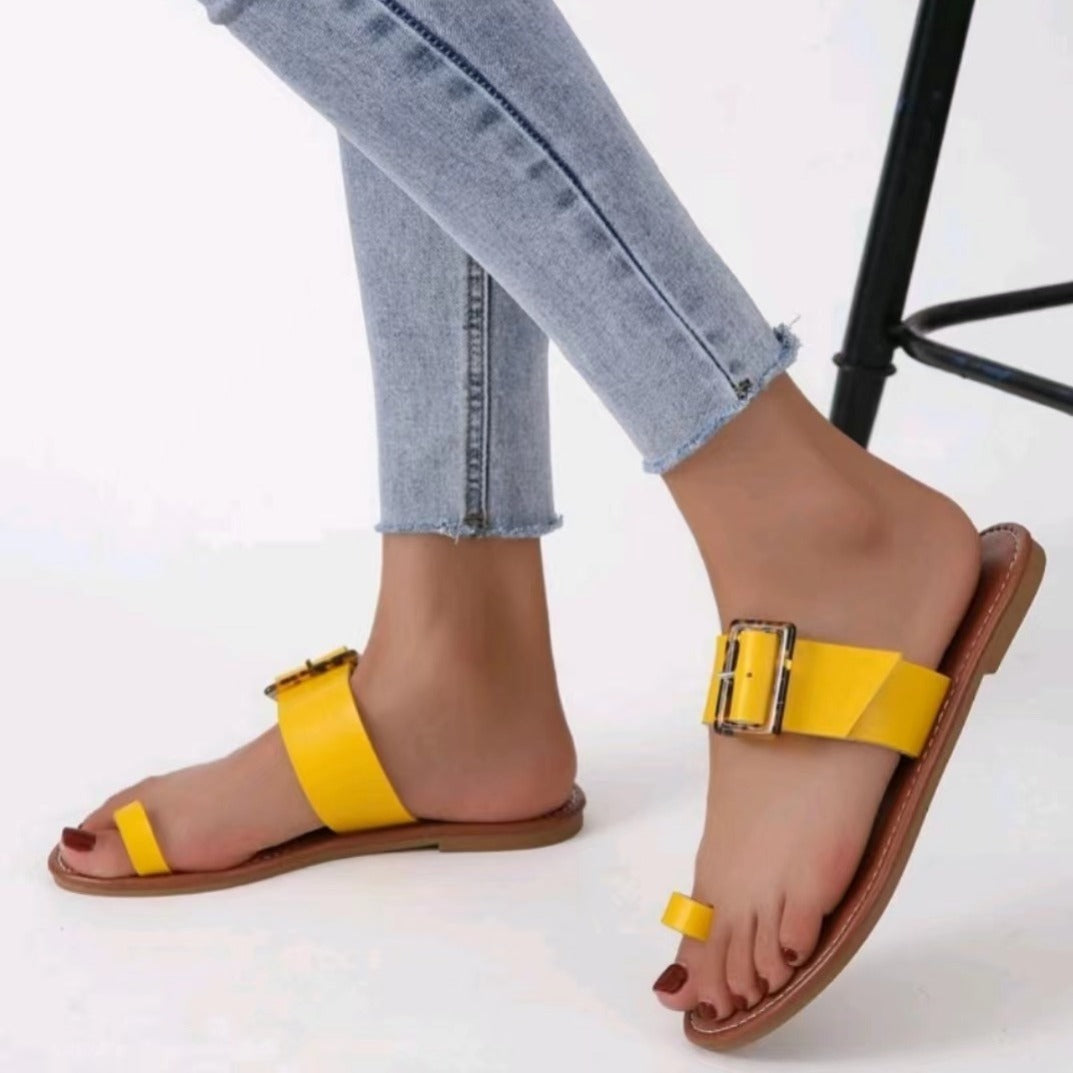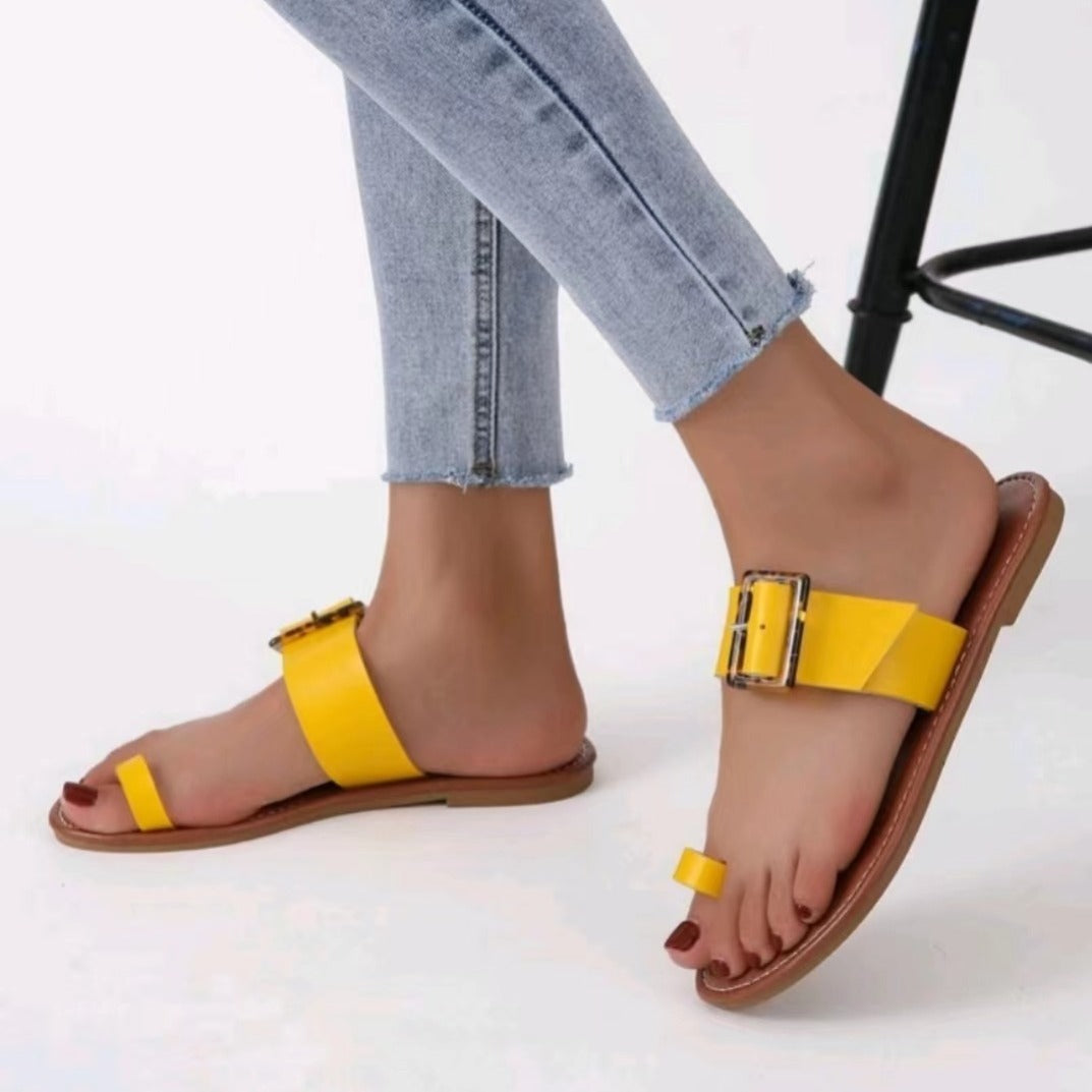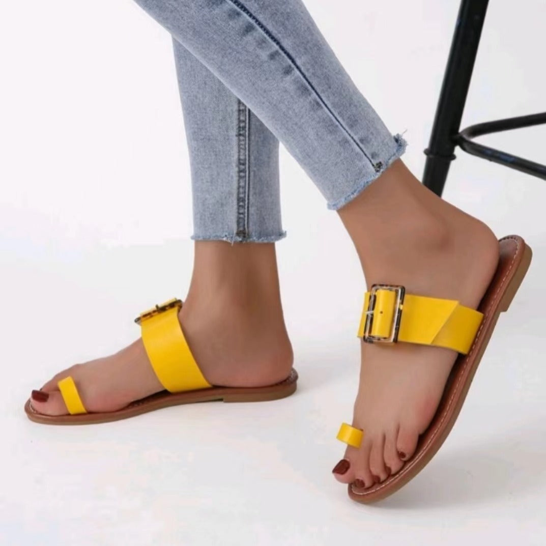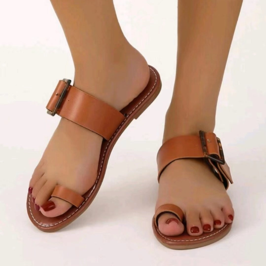 Women's Toe-Loop Flat Sandals, Retro Style Buckle Flat Shoes, Women's Footwear