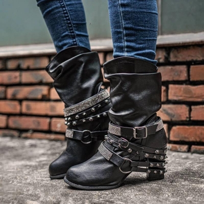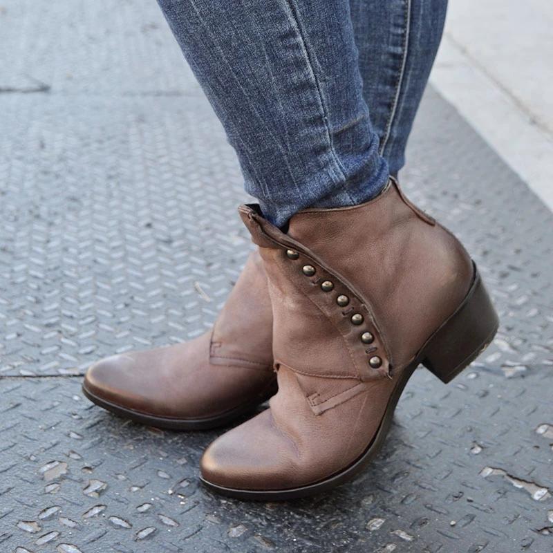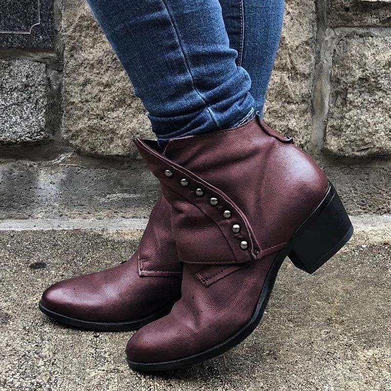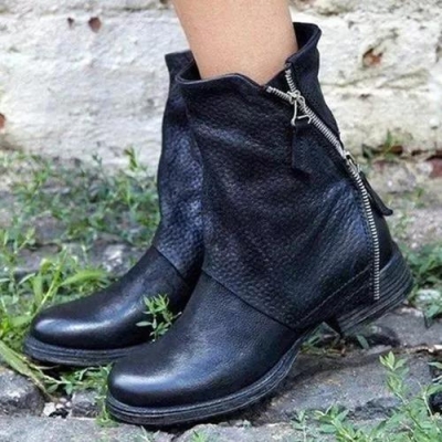 Women's Trendy Vintage Side Zipper Leather Booties