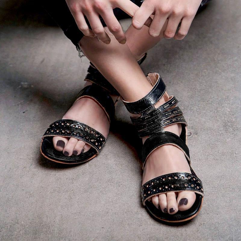 Women'S Vintage Artificial Leather Adjustable Buckle Sandals