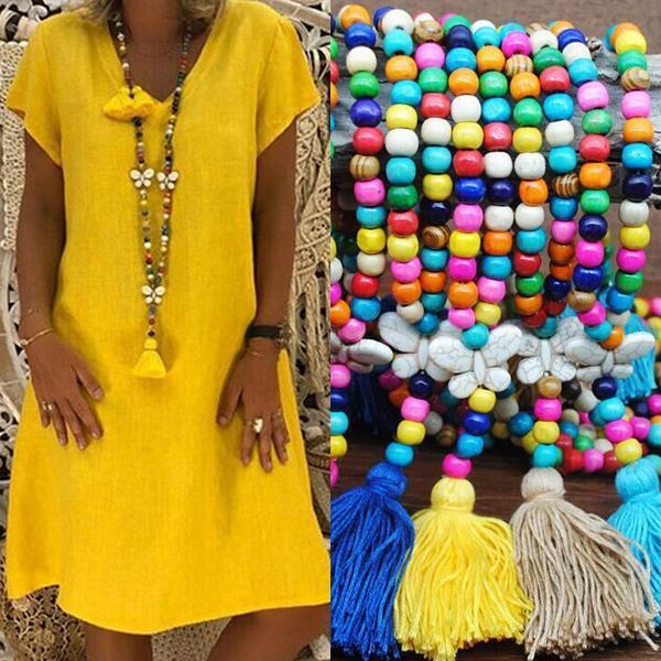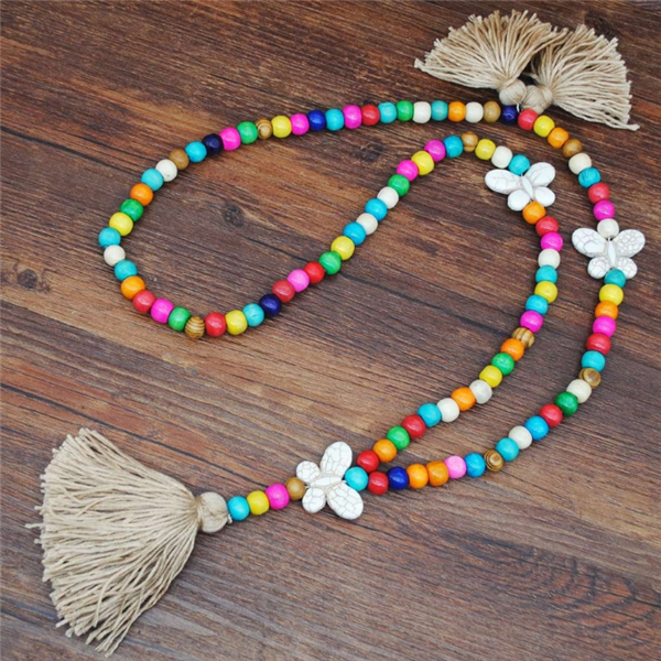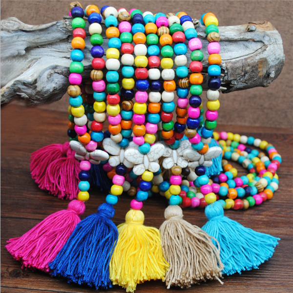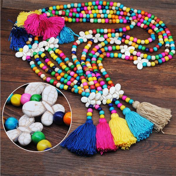 Women's Vintage Boho Tassel Beads Long Necklace