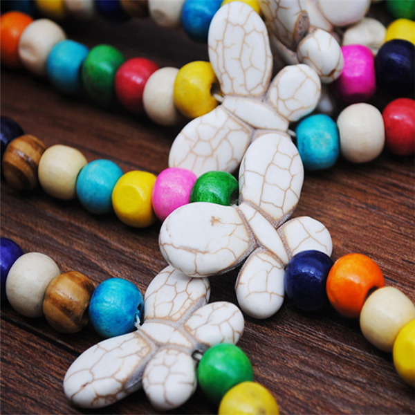 Material:Wood beads + white turquoise +tassel