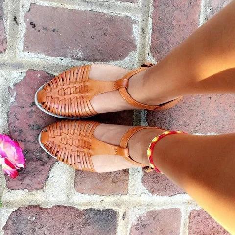 Womens Vintage Casual Summer Flat Heel Pu Buckle Sandals
