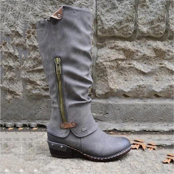 Women's Vintage Mid Calf Credit Card Money Wallet Pocket Boots