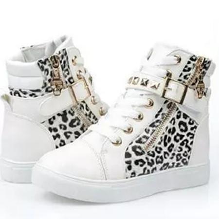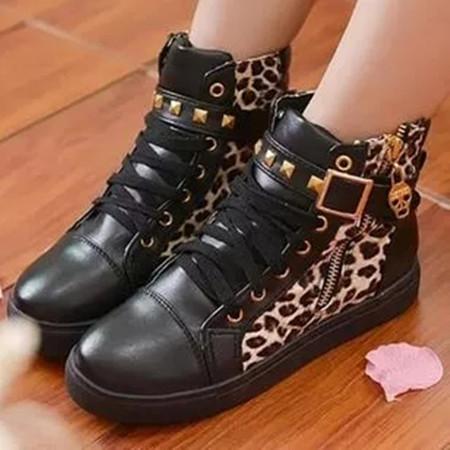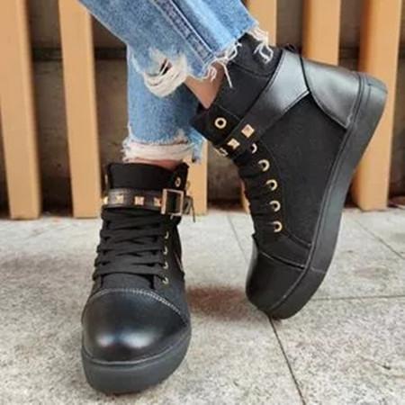 Women's Zipper Lace-up Closed Toe Flat Heel Sneakers