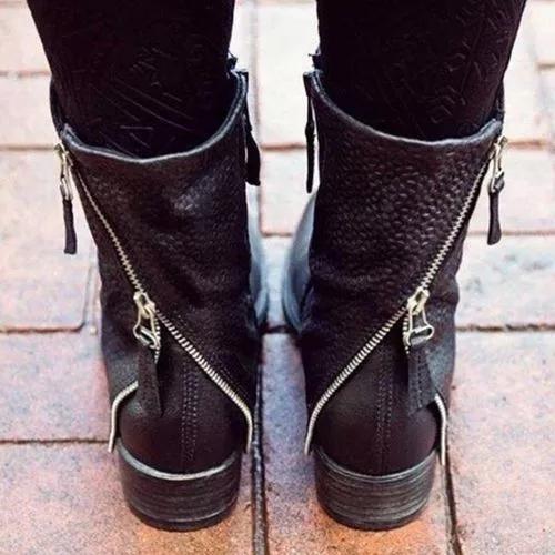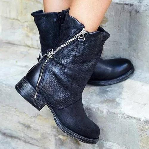 Women's Zipper Mid-Calf Boots Low Heel Boots