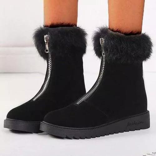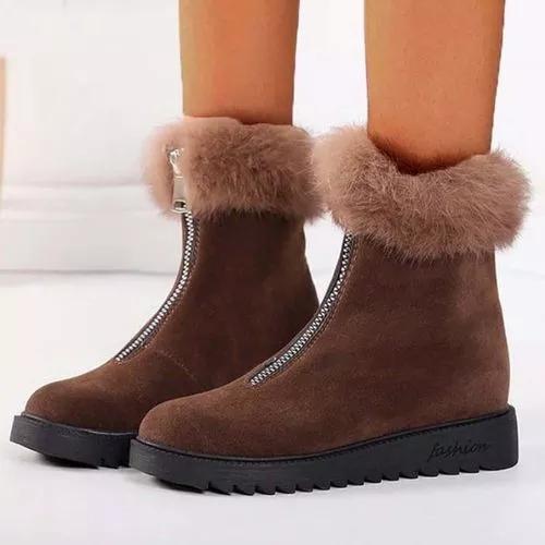 Women's Zipper Mid-Calf Boots Nubuck Wedge Heel Boots