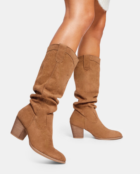Womne Long Calf Suede Chunky Heel Boots