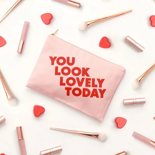 You Look Lovely Today - Canvas Makeup Pouch - Blush Pink Makeup Pouch - Blush Pink Canvas Pouch - Valentine's Day Gift for Her