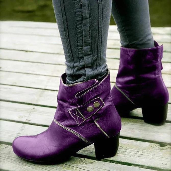 Zipper Artificial Leather Winter Block Heel Boots