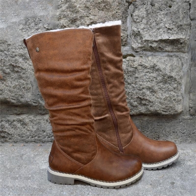 PU Chunky Heel Zipper Casual Winter Women Boots