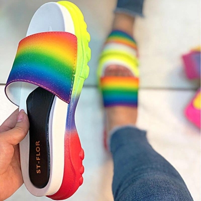 Women Comfy Colorful Open Toe Slip On Platform Slippers