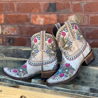 Women Trendy Characteristic Pattern Pointed Toe Slip On Mid Heel Boots