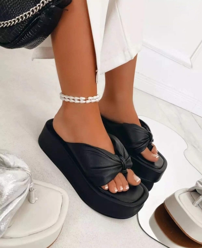Women's Bow Wedge Slippers