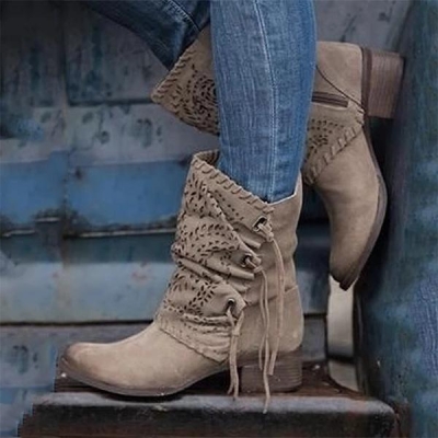 Women's Round Toe Block Heel Boots