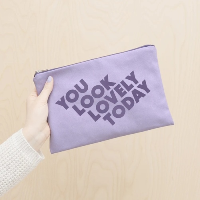 You Look Lovely Today - Canvas Makeup Pouch - Lavender Makeup Pouch - Lavender Canvas Pouch - Clutch Bag - Slogan Pouch