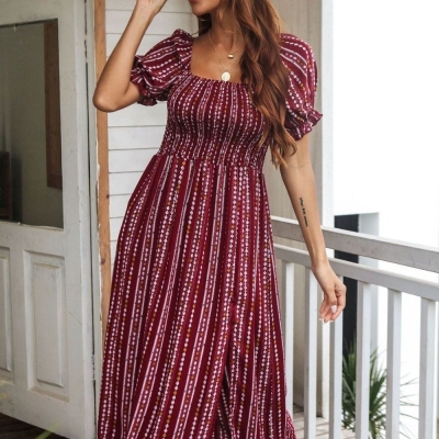 US$ 36.99 - Summer Dress for Women 2022 new Style Printed Puff Sleeve Dress Casual Women Midi Dresses Elegant Vintage Dress - www.streetally.com