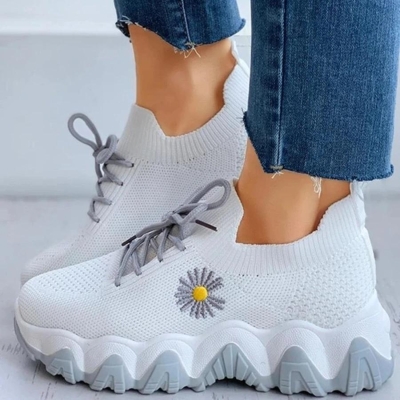 Daisy Pattern Lace-Up Breathable Sneakers