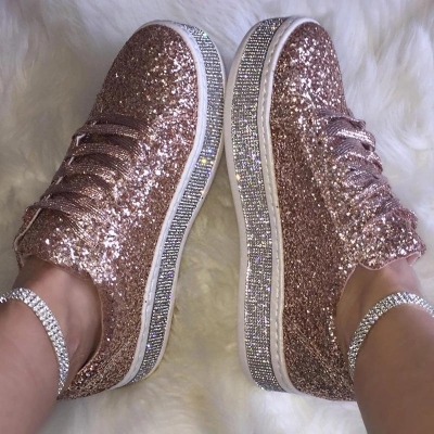 Fashion Rhinestone Paillette Lace-Up Low-Heel Single Shoes