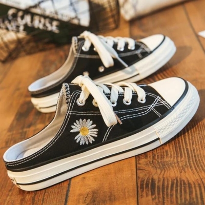 Flat Heel Lace-Up Holiday Daisy Canvas Sneakers
